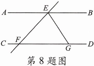 8. 如图,AB//CD,直线 EF 分别交 AB,CD 于 E,F 两点,∠BEF 的平分线交 CD 于点 G,若∠EFG = 52°,则∠EGF 的度数为(