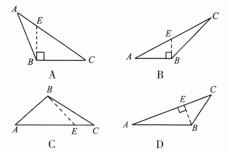 3. 下面四个图形中,线段 BE 是△ABC 的高的是(