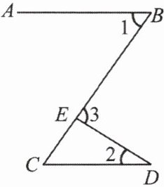 16. (5 分) 如图,直线 AB//CD,∠1 = 55°,∠2 = 32°,求∠3 的度数。