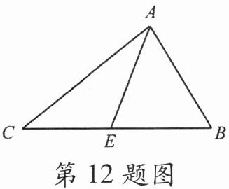 12. 如图,AE 是△ABC 的边 BC 上的中线,若 AB = 8 cm,△ACE 的周长比△AEB 的周长多 2 cm,则 AC =