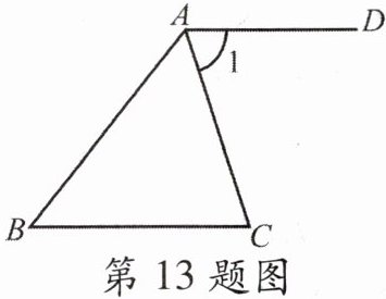 13. 如图,在△ABC 中,∠BAC = 60°,∠B = 50°,AD//BC,则∠1 =