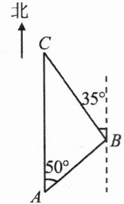 14. 如图,点 C 位于点 A 正北方向,点 B 位于点 A 北偏东 50°方向,点 C 位于点 B 北偏西 35°方向,则∠ABC 的度数为