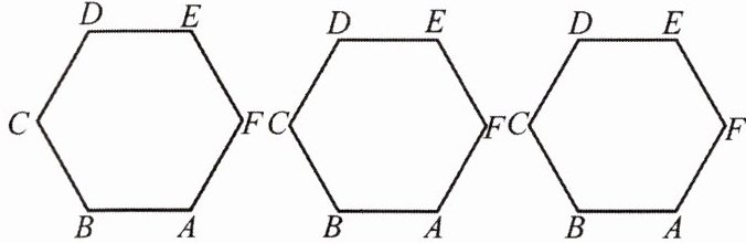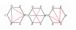 21. (6 分) 如图,六边形钢架 ABCDEF,由六条钢管铰接而成。为使这一钢架稳固,试用三条钢管连接使之不能活动,方法很多,请至少画出三种方法。