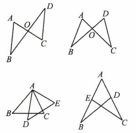 ②对应边:AO=DO,BO=CO,AB=DC;对应角:∠A=∠D,∠B=∠C,∠AOB=∠DOC。