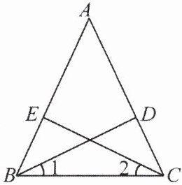 3. 如图,$\triangle AEC \cong \triangle ADB$,点$E和点D$是对应顶点. 若$\angle A = 50^{\circ}$,$\angle ABD = 39^{\circ}$,且$\angle 1 = \angle 2$,求$\angle 1$的度数.
