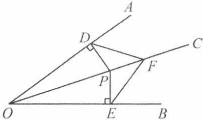 提示:先证△OPD≌△OPE,得PD=PE,∠OPD=∠OPE,再证△PFD≌△PFE.
