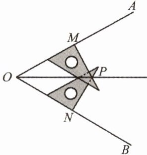 1. 用三角尺可按下面方法画角平分线:在已知的$∠AOB$的两边上,分别取$OM = ON$,再分别取过点$M$,$N作OA$,$OB$的垂线,交点为$P$,则$OP平分∠AOB$.为什么?
