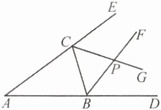 2. 如图,已知$△ABC$,$BF是△ABC的外角∠CBD$的平分线,$CG是△ABC的外角∠BCE$的平分线,$BF$,$CG相交于点P$.求证: