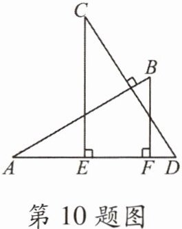 10. 如图,$ AB \perp CD $,且 $ AB = CD $。$ E $,$ F $ 是 $ AD $ 上两点,$ CE \perp AD $,$ BF \perp AD $。若 $ CE = a $,$ BF = b $,$ EF = c $,则 $ AD $ 的长为