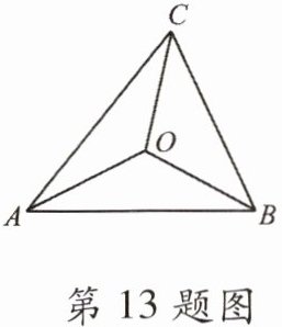 13. 如图,在 $ \triangle ABC $ 中,$ AB = 9 $,$ BC = 7 $,$ AC = 8 $,点 $ O $ 是 $ \triangle ABC $ 的三个内角平分线的交点,$ S_{\triangle AOB} $,$ S_{\triangle BOC} $,$ S_{\triangle AOC} $ 分别表示 $ \triangle AOB $,$ \triangle BOC $,$ \triangle AOC $ 的面积,则 $ S_{\triangle AOB} : S_{\triangle BOC} : S_{\triangle AOC} = $