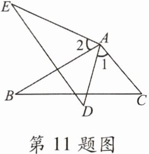 11. 如图,$ AC = AD $,$ \angle 1 = \angle 2 $,要使 $ \triangle ABC \cong \triangle AED $,应添加的条件是