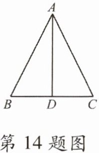 14. 如图,在 $ \triangle ABC $ 中,$ AB = AC $,点 $ D $ 在 $ BC $ 上(不与点 $ B $,$ C $ 重合)。只需添加一个条件即可证明 $ \triangle ABD \cong \triangle ACD $,这个条件可以是