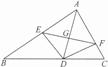 18. 如图,$ AD $ 是 $ \triangle ABC $ 的角平分线,$ DE \perp AB $,$ DF \perp AC $,垂足分别为 $ E $,$ F $。连接 $ EF $,$ EF $ 与 $ AD $ 相交于点 $ G $,$ AD $ 与 $ EF $ 垂直吗?证明你的结论。