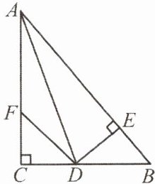 22. 如图,在 $ \triangle ABC $ 中,$ \angle C = 90^{\circ} $,$ AD $ 是 $ \angle BAC $ 的平分线,$ DE \perp AB $,交 $ AB $ 于点 $ E $,点 $ F $ 在 $ AC $ 上,$ BD = DF $。求证: