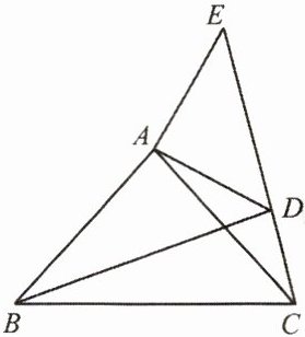 由(1)知$\triangle BAD\cong\triangle CAE$,所以$\angle ADB=\angle AEC$。