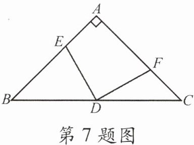 7. 如图,在 $ \triangle ABC $ 中,$ \angle A = 90° $,$ AB = AC = 6 $,$ D $ 为边 $ BC $ 的中点,点 $ E $,$ F $ 分别在边 $ AB $,$ AC $ 上,$ AE = CF $,则四边形 $ AEDF $ 的面积为(
