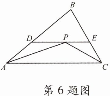 6. 如图,点 $ P $ 到 $ \triangle ABC $ 三边的距离相等,且 $ DE // AC $,$ AB = 8.1 cm $,$ BC = 6 cm $,则 $ \triangle BDE $ 的周长为(