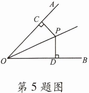 5. 如图,$ OP $ 是 $ \angle AOB $ 的角平分线,$ PC \perp OA $,$ PD \perp OB $,垂足分别是 $ C $,$ D $,则下列结论错误的是(