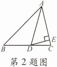 2. 如图,在 $ \triangle ABC $ 中,$ AB = 5 $,$ AD $ 平分 $ \angle BAC $ 交 $ BC $ 于点 $ D $,$ DE \perp AC $,垂足为 $ E $,$ \triangle ABD $ 的面积为 5,则 $ DE $ 的长为(