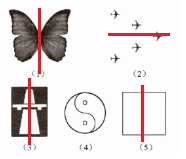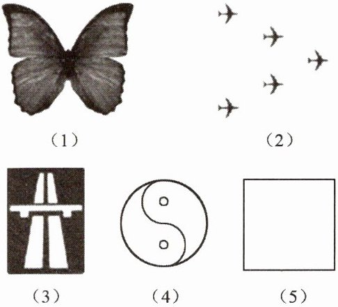 2. 如图所示的每幅图形中的两个图案是轴对称吗?如果是,指出它们的对称轴,并找出一对对应点。
