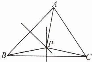 如图,在$\triangle ABC$中,边$AB$,$BC的垂直平分线相交于点P$.