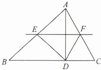 3. 如图,$AD是\triangle ABC$的高线,$AD的垂直平分线分别交AB$,$AC于点E$,$F$. 求证:$\angle B = \frac{1}{2}\angle AED$.