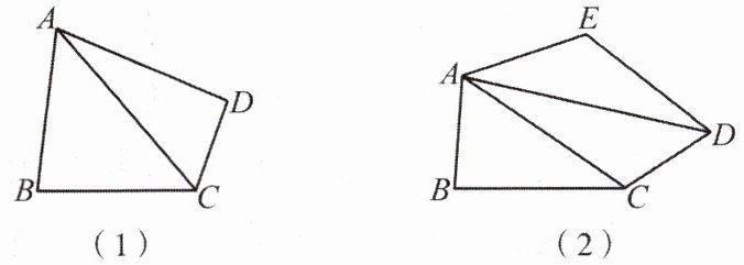 (1) 如图 (1), $\angle BAC + \angle B + \angle BCA$ 等于多少度? $\angle DAC + \angle D + \angle DCA$ 等于多少度? $\angle DAB + \angle B + \angle BCD + \angle D$ 等于多少度?
