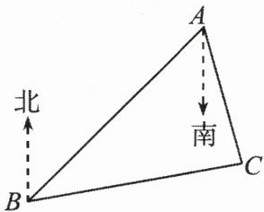 3. 如图, $B$ 处在 $A$ 处的南偏西 $45^{\circ}$ 方向, $C$ 处在 $A$ 处的南偏东 $15^{\circ}$ 方向, $C$ 处在 $B$ 处的北偏东 $80^{\circ}$ 方向, 求 $\angle ACB$ 的度数.