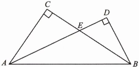 例 如图,$\angle C= \angle D = 90^{\circ},AD,BC$ 相交于点 $E$. $\angle CAE$ 与 $\angle DBE$ 有什么关系? 为什么?