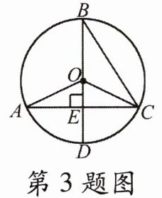3. 如图,已知BD是⊙O的直径,⊙O的弦AC ⊥ BD于点E。若∠AOD = 60°,则∠DBC的度数为