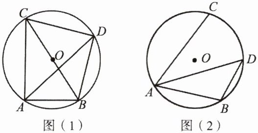 (1) 如图(1),若BC为⊙O的直径,AB = 6,求AC,BD,CD的长度;