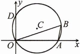 3. 如图,⊙C经过原点O,并与两坐标轴相交于A,D两点。已知∠OBA = 60°,点D的坐标是(0, 2),则⊙C的半径为
