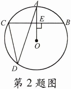 2. 如图,点A,B,C,D在⊙O上,OA ⊥ BC于点E。若∠ADC = 30°,AE = 2,则BC的长为(