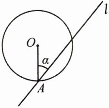 1. 如图,$ OA $ 是 $ \odot O $ 的半径,直线 $ l $ 经过点 $ A $,$ l $ 与 $ OA $ 的夹角为 $ \alpha $,当 $ l $ 绕点 $ A $ 旋转时,