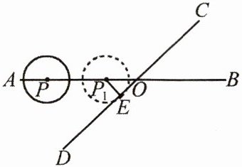 1. 如图,直线 $ AB $,$ CD $ 相交于点 $ O $,$ \angle AOD = 30^{\circ} $,半径为 $ 1 \, cm $ 的 $ \odot P $ 的圆心在直线 $ AB $ 上,且位于点 $ O $ 左侧 $ 6 \, cm $ 处. 如果 $ \odot P $ 以 $ 1 \, cm/s $ 的速度由 $ A $ 向 $ B $ 移动,那么(
