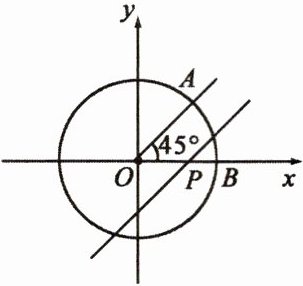 2. 如图,已知 $ \odot O $ 是以坐标原点 $ O $ 为圆心,1 为半径的圆,$ \angle AOB = 45^{\circ} $,点 $ P $ 在 $ x $ 轴上运动. 若过点 $ P $ 且与 $ OA $ 平行的直线与 $ \odot O $ 有公共点,设 $ P(x,0) $,则 $ x $ 的取值范围是