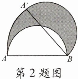 2. 如图,$ AB $ 为半圆的直径,且 $ AB = 4 $,半圆绕点 $ B $ 顺时针旋转 $ 45^{\circ} $,点 $ A $ 旋转到点 $ A' $ 的位置,则图中阴影部分的面积为(