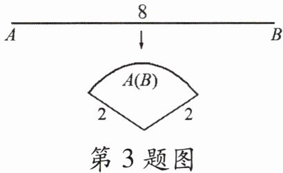 3. 如图,将长为 $ 8 cm $ 的铁丝尾相接围成半径为 $ 2 cm $ 的扇形,则 $ S_{扇形} = $