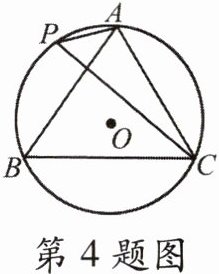 4. 如图,若 $ \odot O $ 的半径为 $ 9\sqrt{3} $,$ \overgroup{AB} = \overgroup{AC} $,$ \angle APC = 60^{\circ} $,$ \angle BCP = 40^{\circ} $, 则 $ \overgroup{PA} $ 的长为
