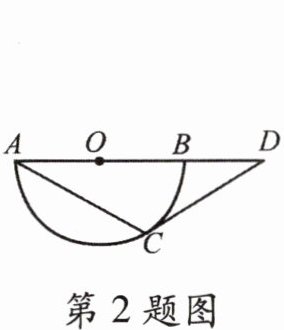 2. 如图,已知 $ AB $ 是半圆 $ \odot O $ 的直径,$ CD $ 是 $ \odot O $ 的切线,切点为点 $ C $,$ CD $ 交 $ AB $ 的延长线于点 $ D $,若 $ \angle A = 30° $,则 $ \angle D $ 等于(