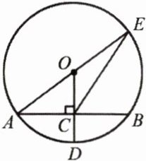 10. (12 分)如图,⊙O 的半径 OD⊥弦 AB 于点 C,连接 AO 并延长交⊙O 于点 E,连接 EC. 已知 AB = 8,CD = 2.