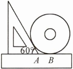 7. 一把直尺、含 60°角的直角三角尺和一个光盘如图摆放,点 A 为 60°角与直尺交点,点 B 为光盘与直尺唯一的交点. 若 AB = 3,则光盘的直径是