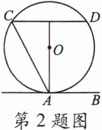 2. 如图,直线 AB 与⊙O 相切于点 A,AC,CD 是⊙O 的两条弦,且 CD//AB. 若⊙O 的半径为 5,CD = 8,则弦 AC 的长为(