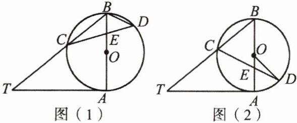 (1)如图(1),连接 BD,求∠T 和∠CDB 的度数;