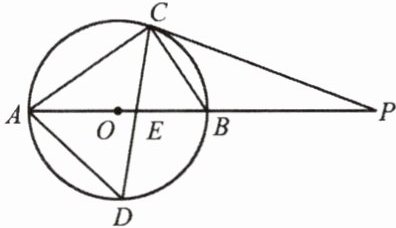 12. (14 分)如图,⊙O 的直径 AB 为 10 cm,弦 BC 为 6 cm,D,E 分别是∠ACB 的平分线与⊙O,AB 的交点,P 为 AB 延长线上一点,且 PC = PE.