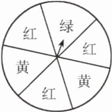 例2 如图,一个转盘被分成6个相等的扇形,颜色分为红、绿、黄3种,指针的位置固定,转动转盘后任其自由停止,其中的某个扇形会恰好停在指针所指的位置(指针指向两个扇形的交线时,重新转动). 现有下列事件:①指针指向红色;②指针指向绿色;③指针指向黄色;④指针不指向黄色. 估计各事件的可能性大小,回答下列问题: