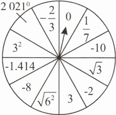 2. 如图是小亮自己设计的可以自由转动的转盘,转盘被等分成 12 个扇形,上面有 12 个实数. 自由转动转盘,当它停止转动时: