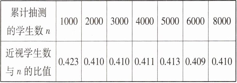 3. 某市为了解初中生近视情况,在全市进行初中生视力的随机抽查,结果如表. 根据抽测结果,可估计该市初中生近视的概率为