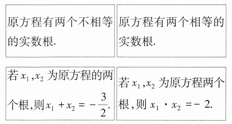 7. 如图,背面图案,形状大小都相同的四张卡片的正面分别写有关于 $ x $ 的方程 $ 2x^{2}-4= 3x $ 的四个说法。现将卡片背面朝上,随机抽取一张,则抽到卡片上的说法正确的概率是(