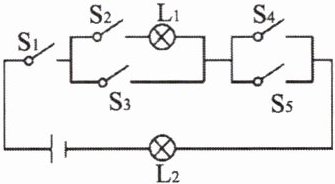 13. 如图,随机地闭合开关 $ S_{1} $,$ S_{2} $,$ S_{3} $,$ S_{4} $,$ S_{5} $ 中的三个,能够使灯泡 $ L_{1} $,$ L_{2} $ 同时发光的概率是